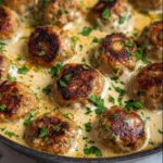 These Amazing Keto Turkey Meatballs in a Creamy Sauce are a delicious low-carb dinner option. Tender turkey meatballs are seasoned with garlic and parsley, browned to perfection, and then simmered in a rich, creamy parmesan sauce. Finished under the broiler for a golden top, this recipe is both comforting and keto-friendly, making it perfect for a quick and satisfying weeknight meal.