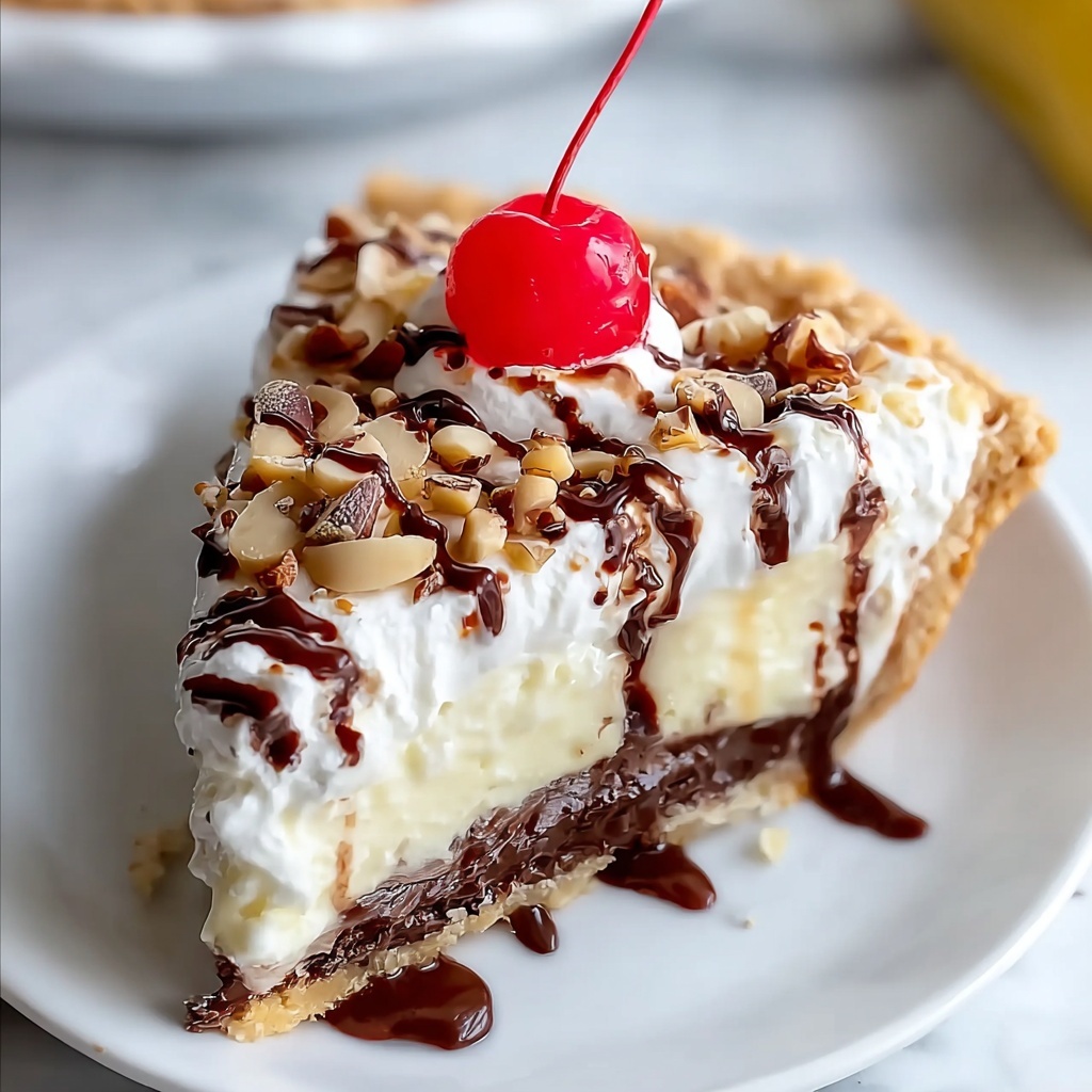 If you want to wow your guests, try assembling this Banana Split Pie Recipe in individual clear dessert cups or mason jars. The colorful fruit layers show through beautifully, making each serving look like a mini celebration. Alternatively, add a drizzle of caramel sauce alongside the chocolate for a decadent twist or scatter edible flowers on top for a pretty, garden-inspired dessert.