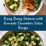 Bang Bang Salmon with Avocado Cucumber Salsa is a deliciously spicy and creamy baked salmon dish topped with a refreshing avocado and cucumber salsa. The salmon is seasoned with smoked paprika and garlic powder, then baked to flaky perfection. It is served with a zesty bang bang sauce made from mayonnaise, sweet chili sauce, sriracha, honey, and rice vinegar, complemented by a bright and fresh salsa made from avocado, cucumber, red onion, cilantro, and lime juice. This healthy and flavorful meal is perfect for a quick weeknight dinner or special occasion.