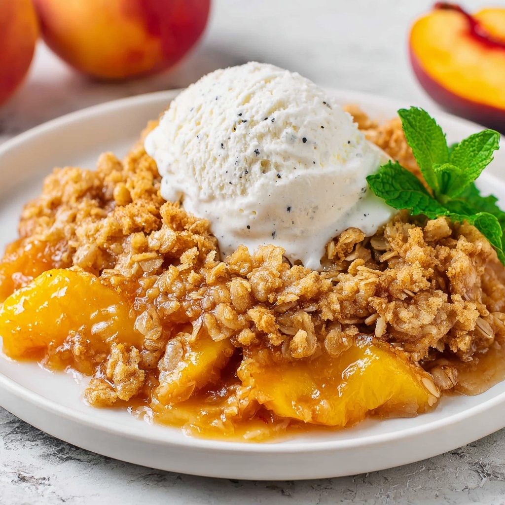 Warm peach crisp deserves all the comforting garnishes you can dream up. A scoop of vanilla ice cream adds creamy richness that melts into the crisp’s warmth, while a dollop of whipped cream offers light sweetness and a fluffy contrast. You can even sprinkle a pinch of cinnamon on top for an added touch of cozy spice and visual appeal.