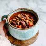 When reheating your chili, warm it over medium heat on the stove, stirring occasionally to prevent sticking or burning. Add a splash of broth or water if it has thickened too much in the fridge. Microwave reheating works well too—just heat in shorter bursts and stir in between for even warming.