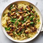 For a wow factor, serve the pasta in shallow bowls with chicken slices fanned out on top, garnished with colorful tomatoes or roasted red peppers. You could also plate individual servings in elegant ramekins for a cozy dinner party touch.