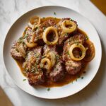 For a fun twist, try serving the Bourbon-Soaked Liver & Onions Recipe atop toasted rustic bread as an open-faced sandwich. Or roll the cooked liver slices in warm tortillas with fresh greens and a light drizzle of horseradish sauce for a delightful fusion meal that’s as visually inviting as it is delicious.