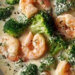 A creamy and comforting Broccoli Shrimp Alfredo recipe that combines tender shrimp, fresh broccoli florets, and fettuccine pasta tossed in a rich homemade Alfredo sauce made with garlic, Parmesan cheese, and heavy cream. This easy 25-minute meal is perfect for a delicious weeknight dinner.