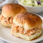 Soft slider buns are ideal because they hold up well during baking without becoming dry or overly dense. Hawaiian rolls are a fantastic alternative too, offering a sweet contrast to the spicy filling.