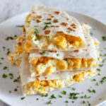Brighten up your Cheddar Egg Quesadilla Recipe with fresh garnishes like chopped cilantro, a dollop of sour cream, or a spoonful of chunky salsa. These add bursts of freshness and a lovely contrast to the creamy, cheesy interior.