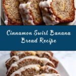 This Cinnamon Swirl Banana Bread features a moist banana-flavored batter with a delicious cinnamon sugar swirl baked inside and topped with a vanilla glaze. Perfectly tender with a golden crust, it’s an indulgent yet comforting treat great for breakfast or dessert.