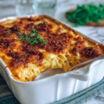 Begin by preheating your oven to 350°F so it’s ready when your casserole is assembled. Cook the pasta in salted boiling water until it’s al dente — just tender but with a slight bite. This helps it hold up in the oven without becoming mushy.