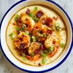 A classic Southern dish featuring creamy, buttery grits topped with a flavorful shrimp and bacon sauce. This comforting recipe combines tender shrimp sautéed with garlic, green onions, and crispy bacon, served over smooth, cheesy grits for a satisfying meal perfect for brunch or dinner.
