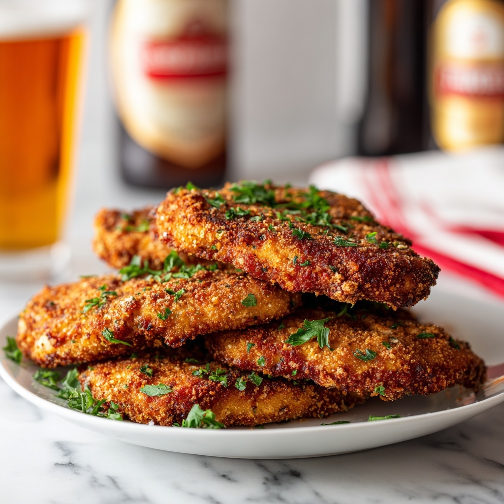 This dish pairs beautifully with simple sides such as a garlicky green salad, buttery mashed potatoes, or roasted vegetables. The simplicity of these sides balances the hearty crispiness of the chicken and rounds out the meal perfectly for any occasion.