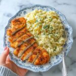 This Crispy Chicken with Creamy Pasta recipe features tender breaded chicken breasts fried to golden perfection and served atop a luscious creamy garlic Parmesan pasta. The dish combines crunchy textures with rich, flavorful sauce for a satisfying American main course perfect for weeknight dinners or casual gatherings.