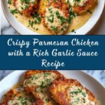 This Crispy Parmesan Chicken with a Rich Garlic Sauce features tender chicken breasts coated in a crispy Parmesan breadcrumb crust, pan-fried to golden perfection, and served with a luscious creamy garlic sauce infused with Parmesan and Italian herbs. It’s a comforting, flavorful American main course perfect for an easy yet impressive meal.
