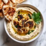 This Crispy Roasted Cauliflower Hummus combines tender, spice-roasted cauliflower with creamy store-bought hummus, elevated by a zesty garlic herb oil. Perfect as a flavorful appetizer or snack, it’s served with fresh naan or pita chips for dipping. The roasted spices add smoky depth, while the fresh herbs and cracked red pepper create a vibrant finish.