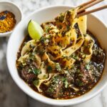 Curry Goat Noodles is a hearty Caribbean-Asian fusion dish that combines tender, flavorful goat meat simmered in a rich curry sauce with soft egg noodles. This recipe features aromatic spices, fresh herbs, and a touch of heat from scotch bonnet pepper, resulting in a unique and satisfying meal perfect for those seeking a spicy and savory noodle bowl.