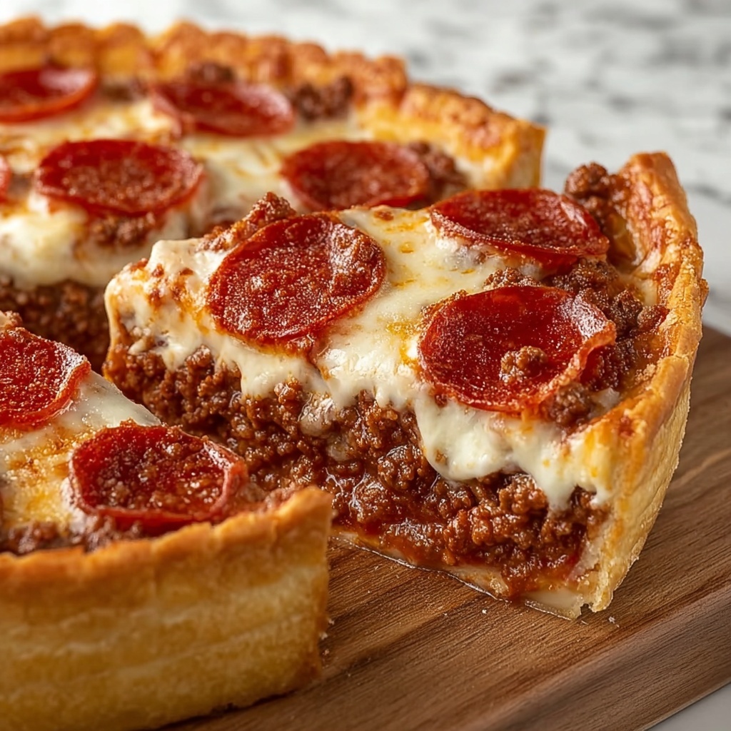 After baking, let your Deep Hamburger Sausage & Pepperoni Pie: Comfort Food Bliss Recipe cool for about 10 minutes to set up, making it easier to slice and serve. This brief rest lets all those warm, melty fillings settle perfectly so every bite stays intact.