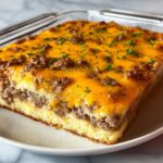 A hearty and savory Sausage and Egg Breakfast Casserole perfect for feeding a crowd. This make-ahead dish features browned breakfast sausage, fluffy eggs, melted cheddar cheese, and soft bread cubes baked to golden perfection. Ideal for brunch or a weekend breakfast, it’s easy to prepare, refrigerate overnight, and bake fresh in the morning.