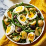 This French-Style Potato and Green Bean Salad is a vibrant and refreshing dish featuring tender new potatoes and crisp green beans dressed in a tangy Dijon mustard vinaigrette. Enhanced with hard-boiled eggs, olives, capers, and fresh herbs like parsley and chives, it’s a perfect light meal or side dish rich in textures and classic French flavors.