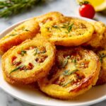 These crispy fried red tomatoes offer a delicious twist on the classic Southern fried green tomatoes by using ripe red tomatoes. Each slice is coated in a seasoned blend of cornmeal, flour, and breadcrumbs, then fried to golden perfection with a tender, juicy interior. Ideal as an appetizer, side dish, or snack, they bring a delightful crunch and rich flavor to your table.