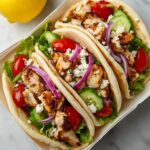 This Chicken Pitas recipe features juicy grilled chicken marinated in balsamic vinaigrette, paired with a refreshing cucumber yogurt sauce and fresh vegetables, all tucked into soft pita pockets. Perfect for a quick and delicious lunch or dinner, these pitas combine Mediterranean flavors with simple preparation.
