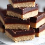 - Press the peanut butter layer firmly to ensure neat, even squares upon cutting.