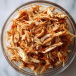 Reheat the shredded chicken gently in the microwave or on the stovetop with a splash of water or reserved cooking liquid to keep it moist. Covering the dish while reheating helps trap steam and preserves that tender, juicy texture.