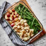 Chicken thighs are a great alternative, especially if you prefer darker meat that stays extra juicy. Just cut them into similar-sized chunks so they cook evenly with the potatoes and green beans.