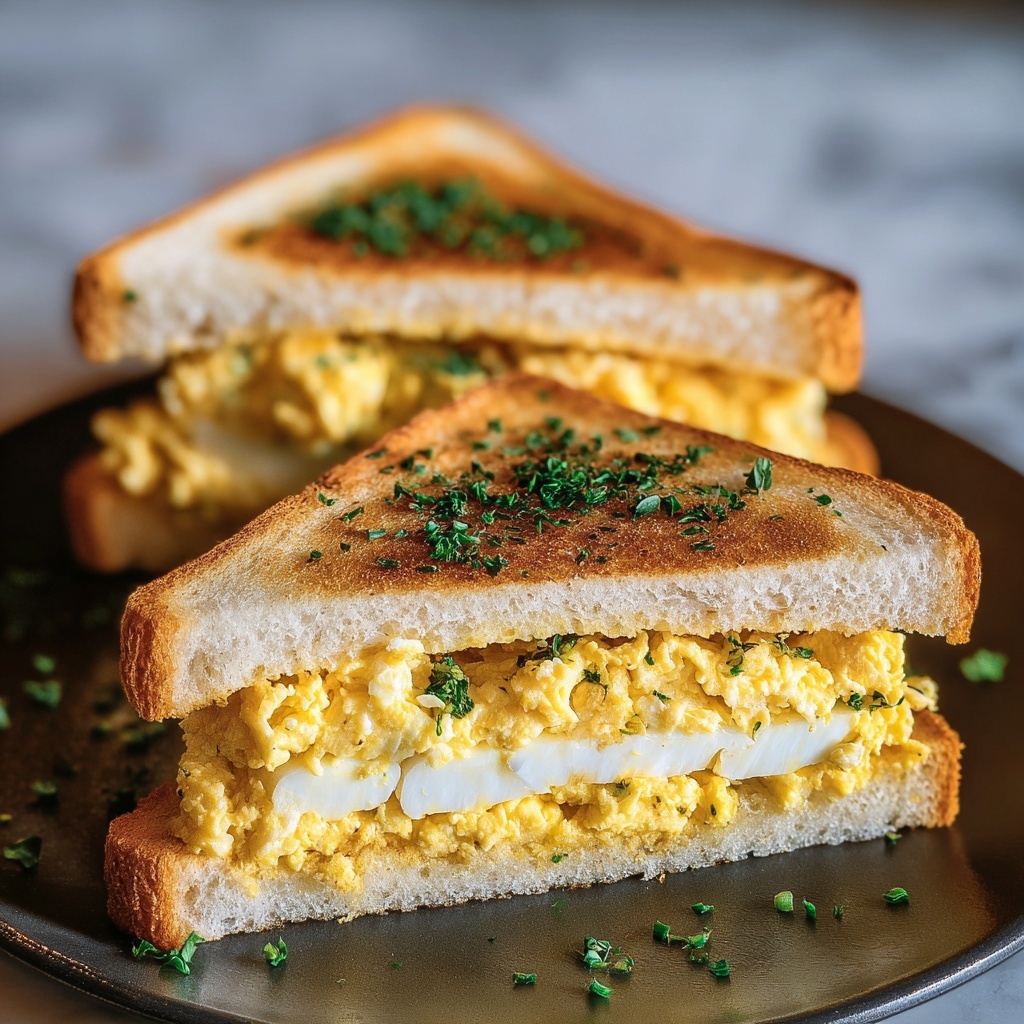 - Assemble Sandwiches: Lightly butter each slice of bread if desired for extra flavor and softness. Spoon the egg mixture evenly onto one slice, then top with the other slice of bread.