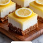 Delight in these tangy and creamy Lemon Cheesecake Bars, featuring a buttery graham cracker crust and a luscious lemon-infused cheesecake filling. Perfectly balanced with zesty lemon juice and smooth cream cheese, topped with whipped cream and fresh lemon slices for a bright, refreshing dessert.