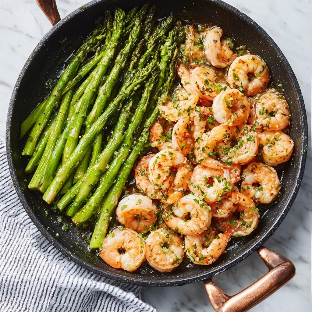You can transform this dish into a stylish appetizer by layering the shrimp and asparagus on toasted baguette slices with a brush of garlic butter. Alternatively, serve it atop warm pasta tossed lightly with olive oil and herbs for an easy yet elegant dinner that looks as good as it tastes.