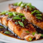 This salmon shines best alongside light, wholesome sides. Fluffy white or brown rice soaks up the extra glaze, while roasted vegetables bring rustic warmth. A crisp green salad with a lemon vinaigrette can also provide a refreshing counterpoint, making your meal balanced and satisfying.