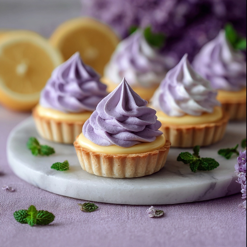 These Mini Lemon Tarts with Lilac Meringue combine a crisp buttery tart shell filled with tangy lemon curd and topped with a delicate lilac-flavored meringue. Perfectly sized for individual servings, these floral-inspired French tarts are ideal for spring celebrations, bridal showers, or elegant afternoon tea gatherings.