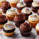 Generously frost cooled vanilla cupcakes with the vanilla buttercream and sprinkle with colorful rainbow sprinkles for a cheerful finish. For the chocolate cupcakes, spread or pipe the chocolate buttercream and top with chocolate sprinkles if you like — it’s a classic look that tastes heavenly with every bite!
