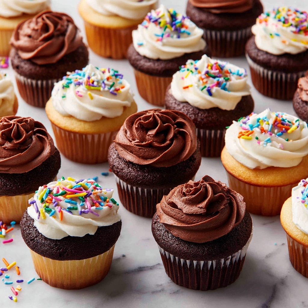 These delightful Mini Cupcakes feature two irresistible flavors: classic vanilla and rich chocolate. Perfect for parties or a sweet treat, the cupcakes are baked to perfection and topped with creamy buttercream frosting and optional sprinkles for added fun. Made with simple ingredients and easy-to-follow steps, these bite-sized treats will satisfy any dessert craving.