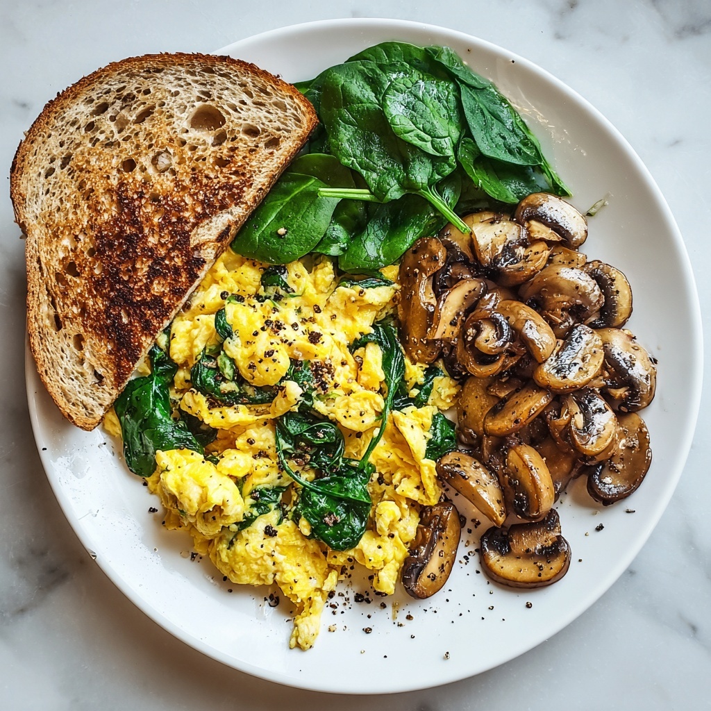 Try serving your Mushroom-Spinach Scrambled Eggs Recipe in a warm tortilla for a quick breakfast burrito, or spoon it over toasted English muffins with a drizzle of pesto for a gourmet touch. You can even pile the scramble onto a bed of mixed greens for a light brunch option.
