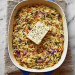 A simple and flavorful one-pan baked feta and veggie orzo dish that combines creamy feta with fresh grated vegetables and perfectly cooked orzo pasta, baked together for a comforting, easy meal.