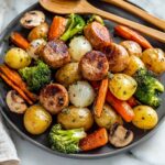 This One Pan Baked Italian Sausage and Veggies recipe is an easy, flavorful, and hearty meal perfect for a quick weeknight dinner. It combines savory sweet Italian sausage with a colorful medley of roasted baby potatoes, broccoli, onions, mushrooms, and carrots, all tossed in olive oil and Italian seasonings then baked to perfection in one pan.