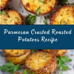 Crispy and flavorful Parmesan Crusted Roasted Potatoes made with baby Yukon gold potatoes coated in a savory garlic herb butter and olive oil mixture, then baked to golden perfection with a crisp Parmesan cheese crust.