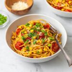 This vibrant and flavorful Pasta with Cherry Tomatoes, Roasted Red Peppers, and Corn is a quick and easy Italian-inspired vegetarian main course perfect for warm weather. The combination of sweet cherry tomatoes, smoky roasted red peppers, and sweet corn mingles beautifully with al dente pasta, fresh basil, and a touch of garlic. It’s a refreshing dish that can be served warm and topped with Parmesan cheese for added richness, making it perfect for weeknight dinners or casual gatherings.
