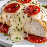 Serve the Pepperoni Pizza Stuffed Chicken Bake Recipe family-style in the baking dish, letting everyone dig in. Or plate each stuffed chicken breast on a large platter, garnished with fresh herbs, for a more formal touch. For a fun twist, slice the breasts crosswise to reveal the colorful pepperoni and cheese layers inside—always a crowd-pleaser!