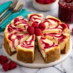 Top your cheesecake with a generous spoonful of the reserved raspberry sauce served on the side, letting everyone tailor their sweetness and tartness. Fresh raspberries, a sprinkle of powdered sugar, or even a few mint leaves make elegant and delicious garnishes that add a burst of freshness or visual sparkle.