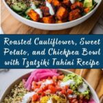 How to Make Roasted Cauliflower, Sweet Potato, and Chickpea Bowl with Tzatziki and Tahini Recipe