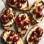 Consider serving these toasts on a rustic wooden board adorned with edible flowers or extra clusters of fresh grapes for a charming look. For a party platter, arrange toasts in a circular pattern around a bowl of honey or ricotta for dipping, adding a playful interactive element.