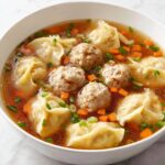 Savory Egg Roll Soup Delight is a comforting and flavorful soup inspired by classic egg roll ingredients. Ground pork is browned and sautéed with aromatic garlic and ginger, combined with shredded cabbage, carrots, and optional mushrooms, then simmered in a rich chicken broth enhanced with soy sauce and sesame oil. This easy-to-make soup delivers all the deliciousness of an egg roll in a cozy, warm bowl perfect for any occasion.