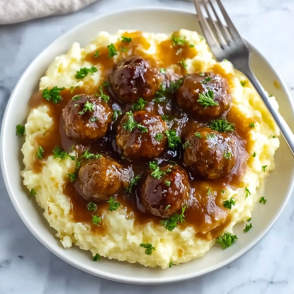 For a fun twist, try serving these meatballs in a toasted hoagie roll with the gravy as a sandwich, making a hearty Salisbury steak meatball sub. Alternatively, plating the meatballs atop creamy polenta can introduce a delightful texture variation that will wow guests.