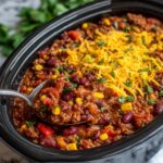 This Slow Cooker Taco Casserole is a hearty, flavorful dish that combines seasoned ground beef, black beans, corn, and tortillas layered and cooked to perfection in a slow cooker. Topped with melted Mexican cheese and garnished with fresh cilantro, sour cream, jalapeños, and avocado, it’s a comforting and easy meal perfect for busy days or family dinners.