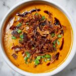 A vibrant and nourishing Spicy Miso Carrot Soup that blends the natural sweetness of carrots with the tangy umami of miso paste and a spicy kick from chili flakes. This vegan, gluten-free Asian-inspired soup is perfect for a comforting meal, garnished with creamy coconut milk or yogurt and fresh herbs for added freshness.