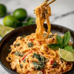 When ready to eat leftovers, gently reheat the noodles in a skillet over medium heat. Add a splash of water if the sauce thickened too much. Alternatively, a quick microwave stir with a damp paper towel cover works wonderfully. Freshen with basil and lime after warming for optimal taste.