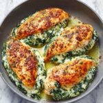 This Spinach Artichoke Stuffed Chicken Breast recipe is a delicious and creamy twist on classic stuffed chicken. Featuring a savory filling of spinach, artichokes, and cheeses, the chicken breasts are seasoned, stuffed, seared to golden perfection, and finished with a luscious creamy sauce, making it a satisfying and flavorful meal perfect for weeknight dinners.