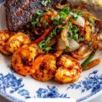 3. Cook Shrimp: In the same pan, add the shrimp and cook for 2 minutes per side, or until pink and cooked through. Remove and set aside with the steak.