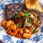 3. Cook Shrimp: In the same pan, add the shrimp and cook for 2 minutes per side, or until pink and cooked through. Remove and set aside with the steak.
